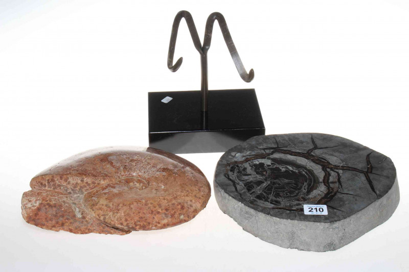Two large fossils and one stand.
